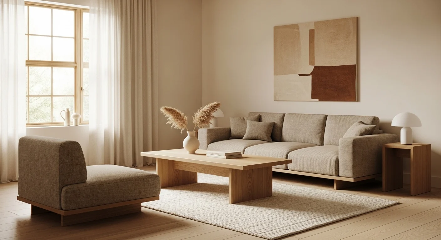 1. Soft Neutral Minimalist Living Room