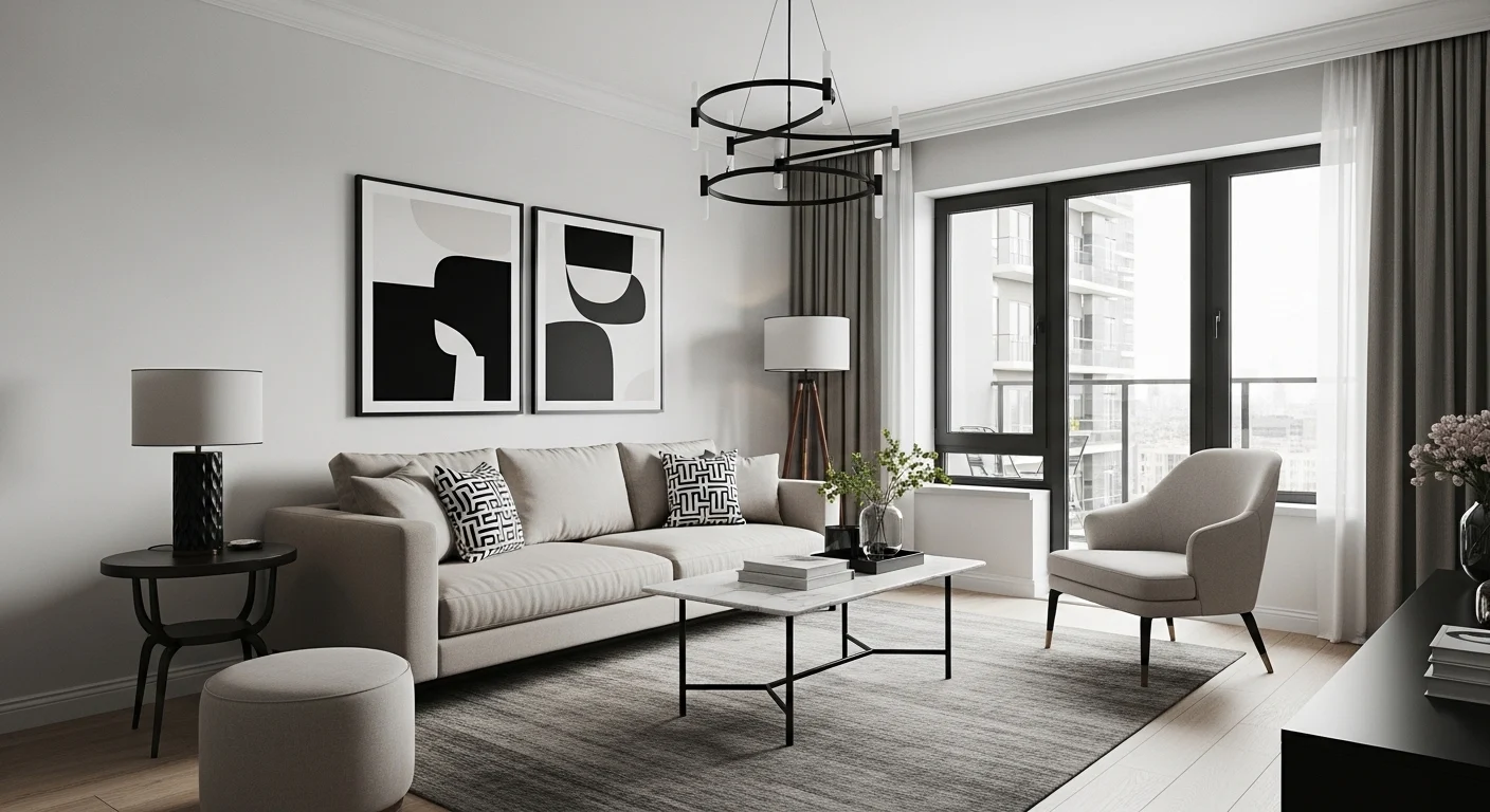9. Apartment Living Room with Black Accents