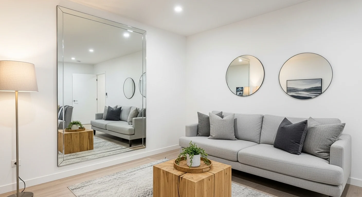 Mirrors visually expand small apartments. Light reflection increases brightness. Rooms appear double in size. Strategic placement enhances depth. Decorative mirrors add elegance. Budget-friendly transformation.