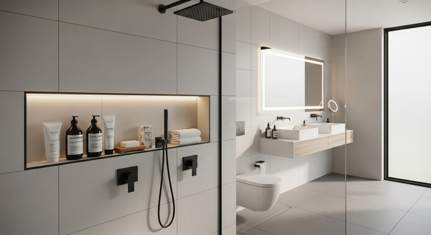 Shower niches keep shampoo bottles organized without bulky racks.