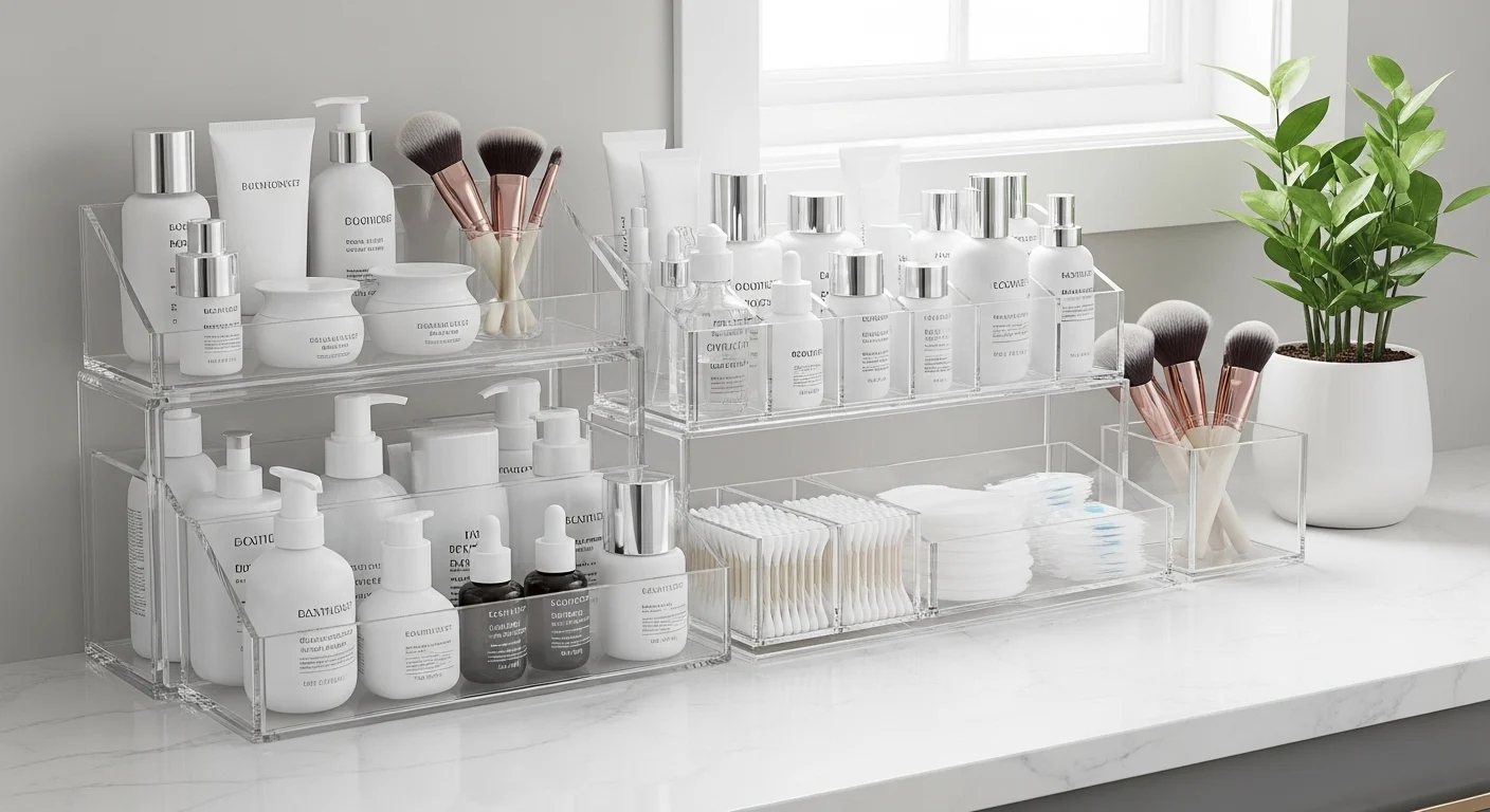 Dividers separate small items like makeup and grooming tools, preventing messy drawers.