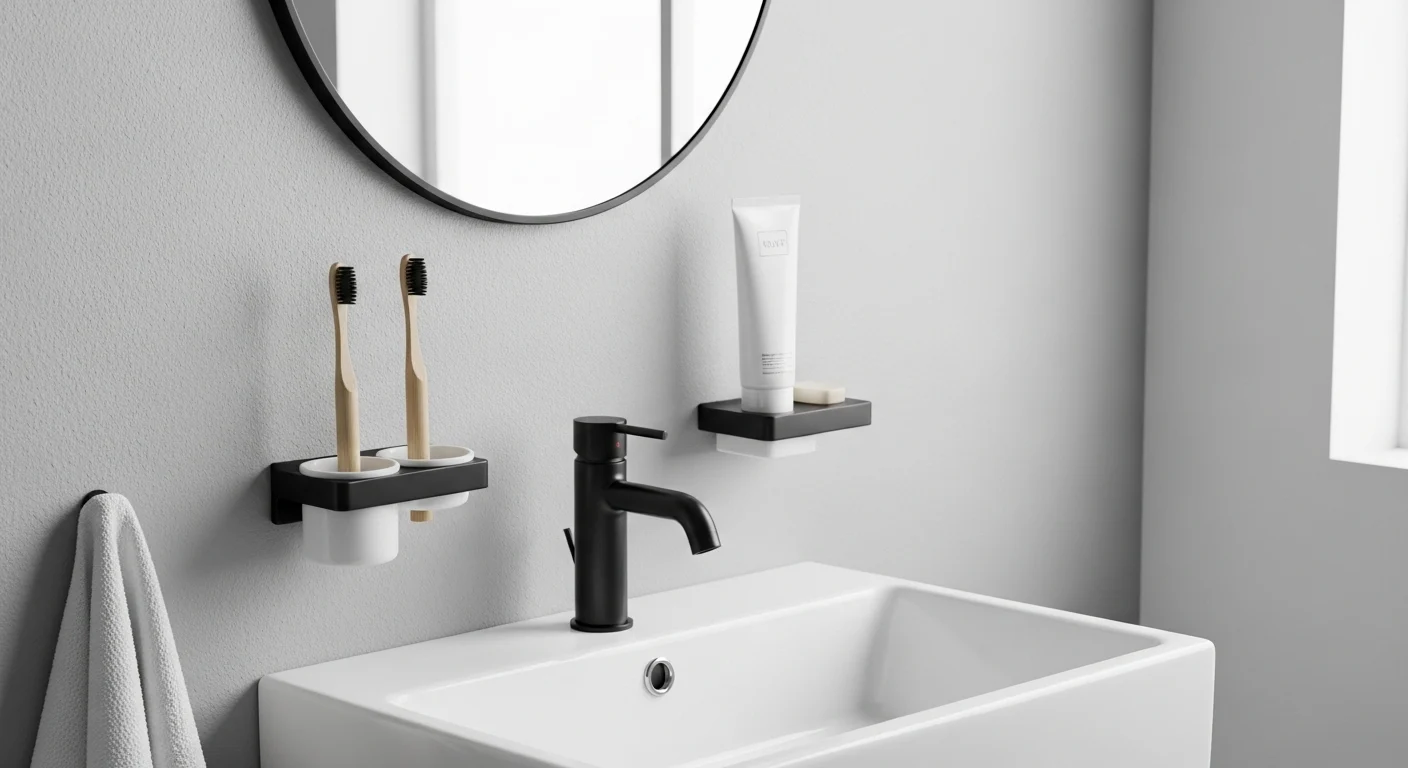 Wall-mounted holders free up counter space and keep hygiene items organized.