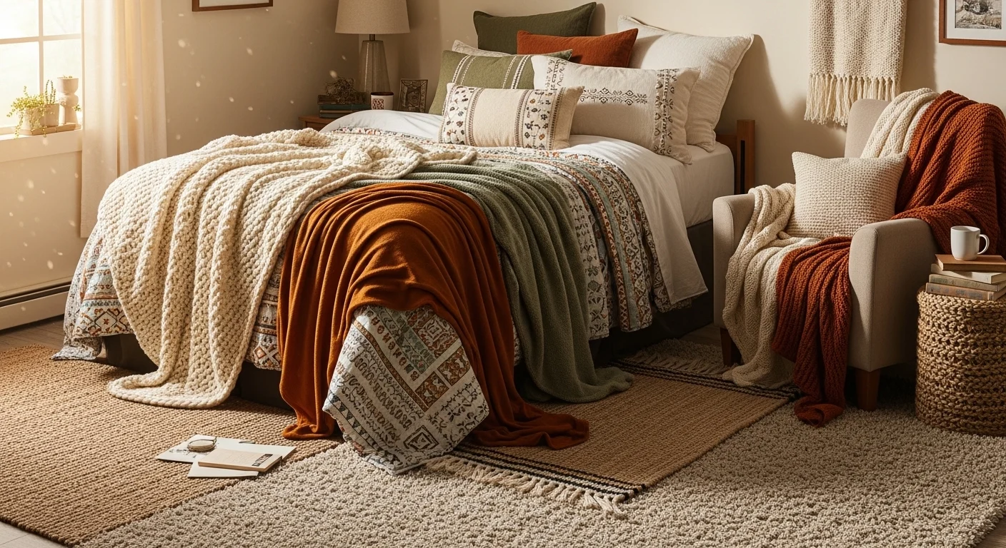 Bedding defines dorm room style. Coordinated sheets, duvets, and pillows elevate design. Comfort is key. Bedding trends in 2026 favor texture. Visual harmony improves relaxation. Beds become focal points.
