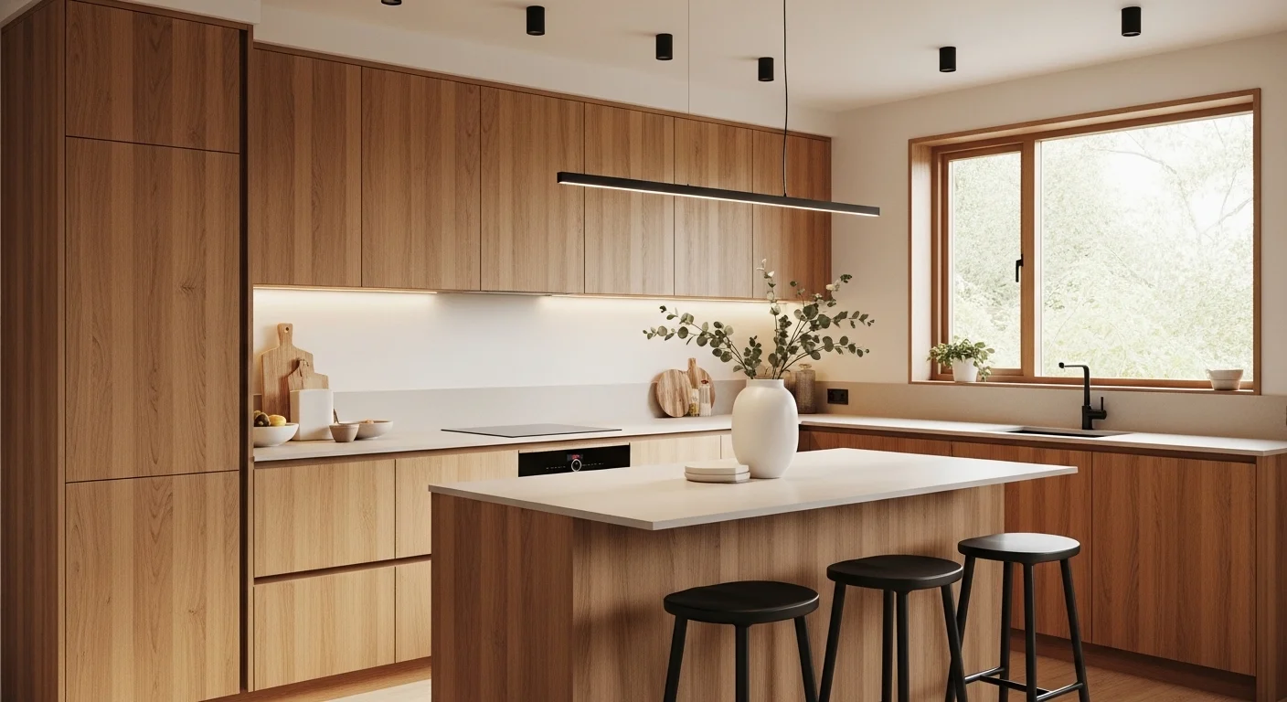 Japandi blends Japanese simplicity with Scandinavian warmth. Clean lines, natural wood, and calm colors create peaceful kitchens perfect for modern lifestyles.