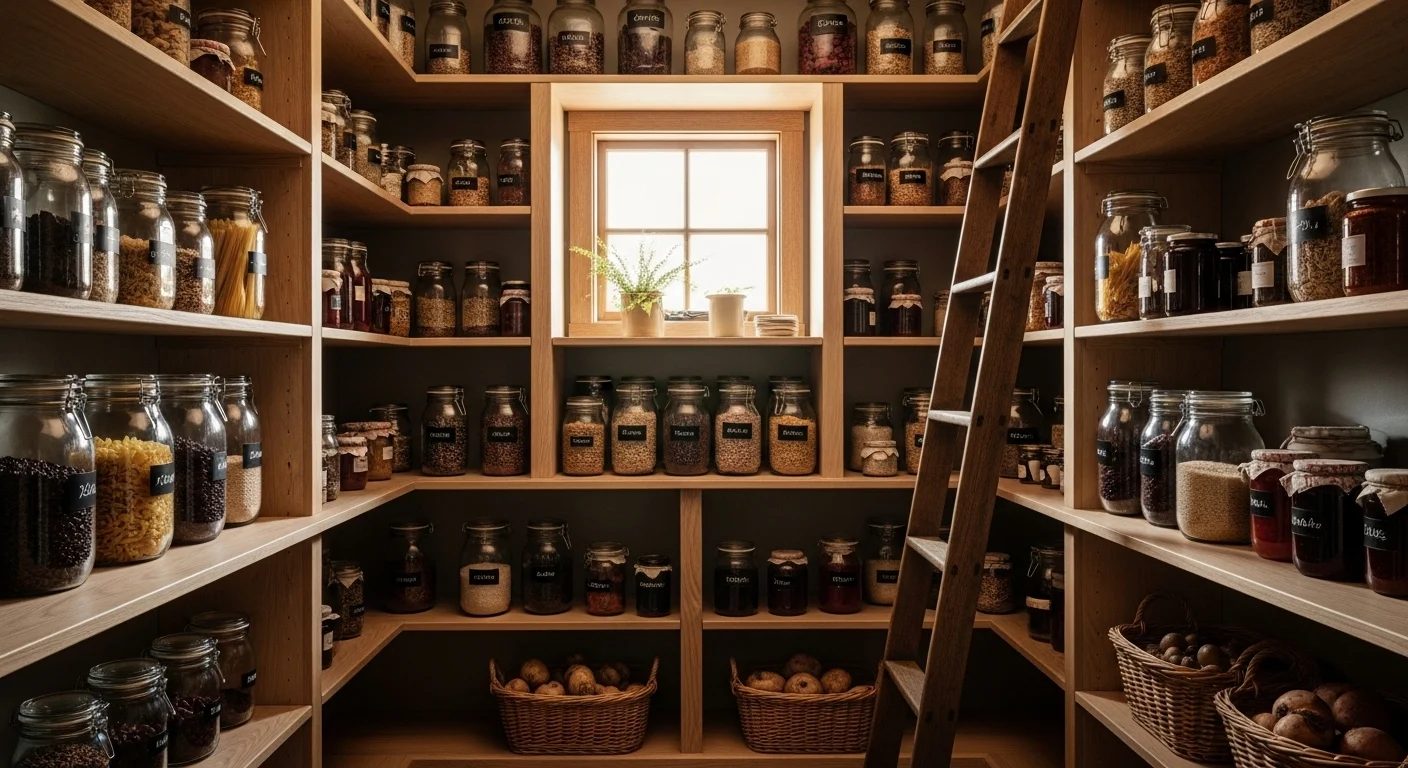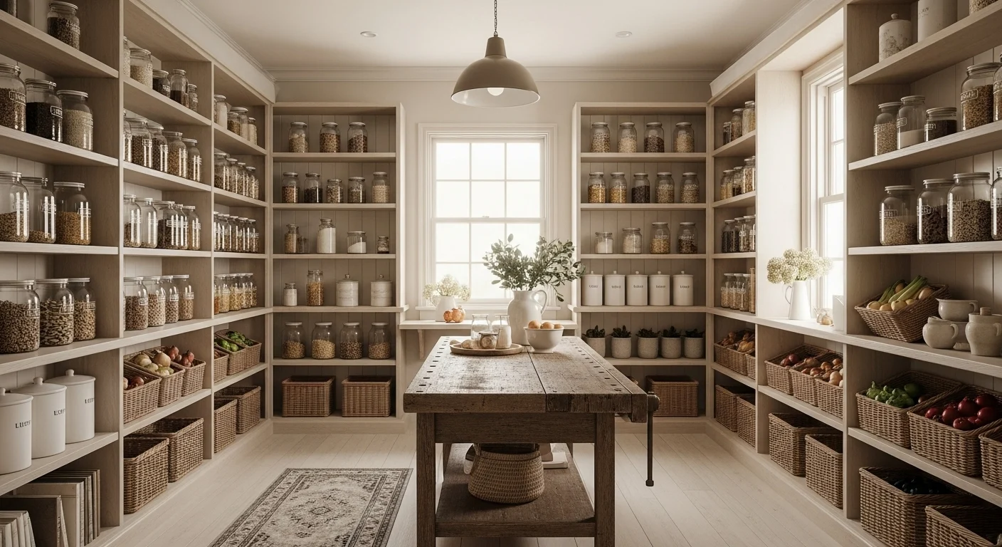 Farmhouse Pantry with Warm Lighting