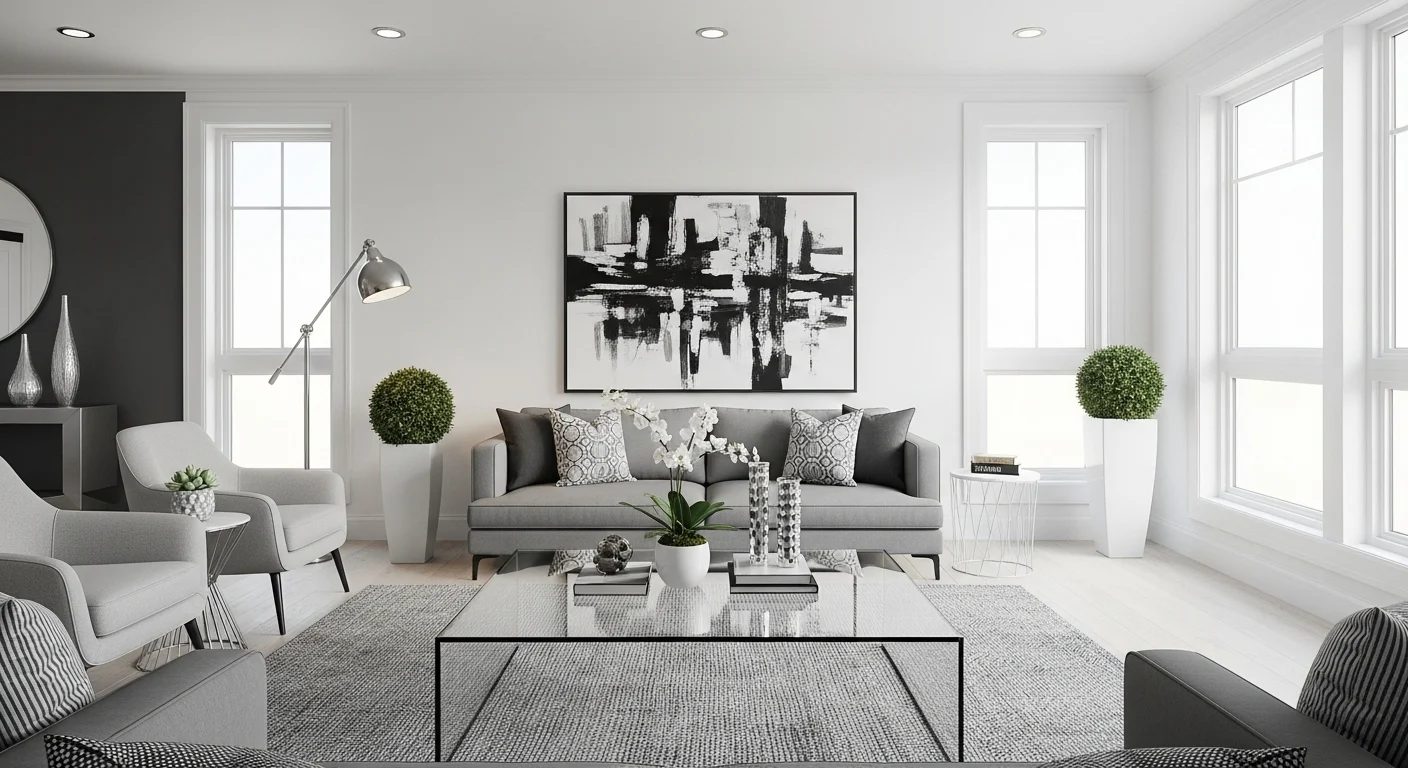 Adding black accents introduces contrast and modern boldness into a gray space. Black lighting fixtures, frames, or furniture pieces create visual structure without overwhelming the room. The result feels stylish and contemporary.