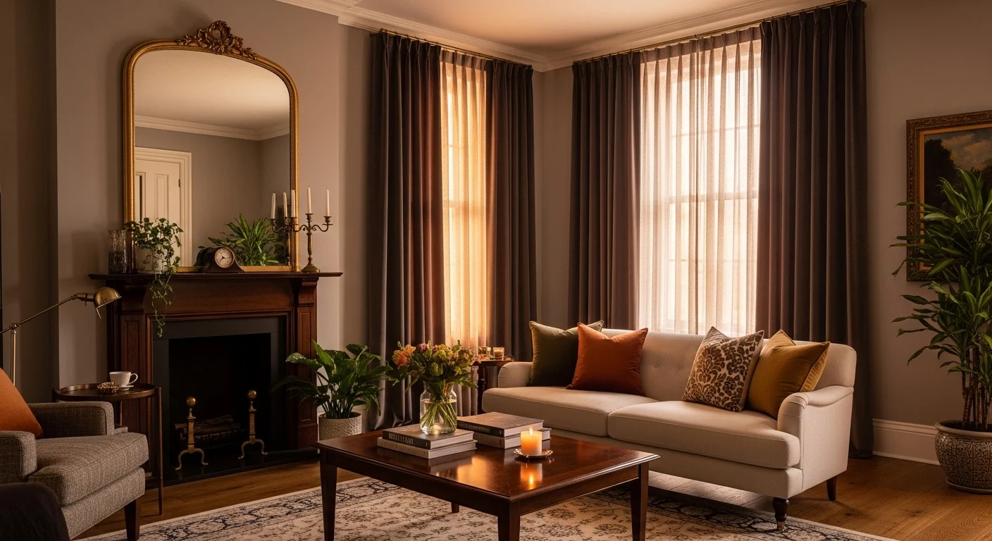 5. Earth-Tone Curtains