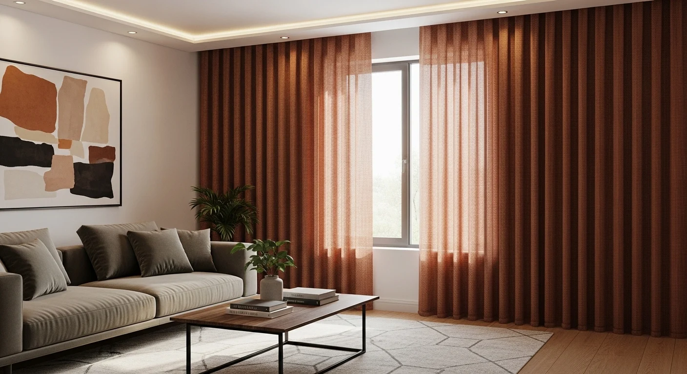 Earth-tone curtains reflect nature-inspired trends. Colors like beige, clay, olive, and taupe are popular in 2026. These tones create warmth and balance. They complement neutral furniture beautifully. Earthy shades ground the living room. The space feels calm and inviting.