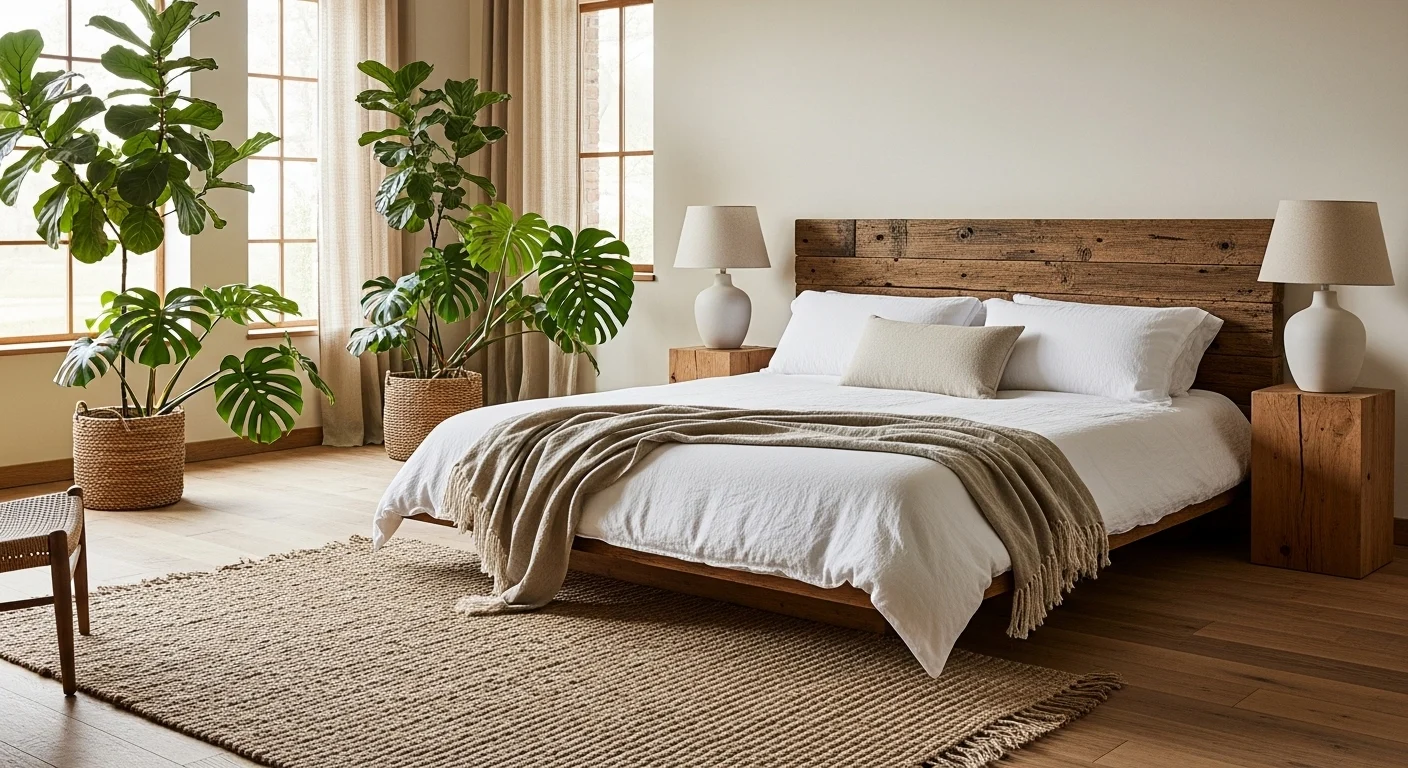 Nature plays a strong role in luxury design. Natural wood, stone textures, linen fabrics, and greenery create a serene master bedroom that feels restorative. Large windows and natural light enhance the connection to the outdoors.