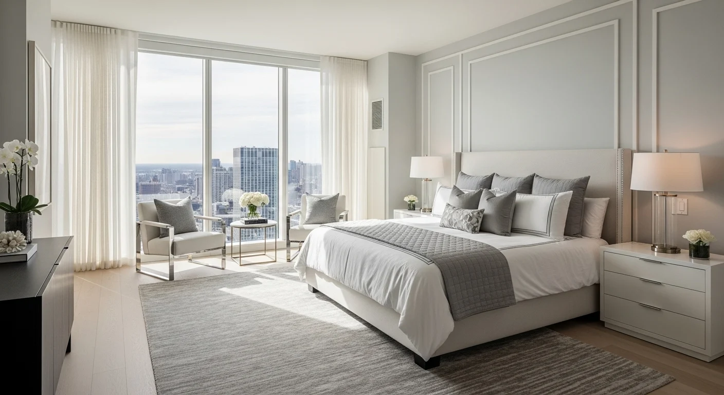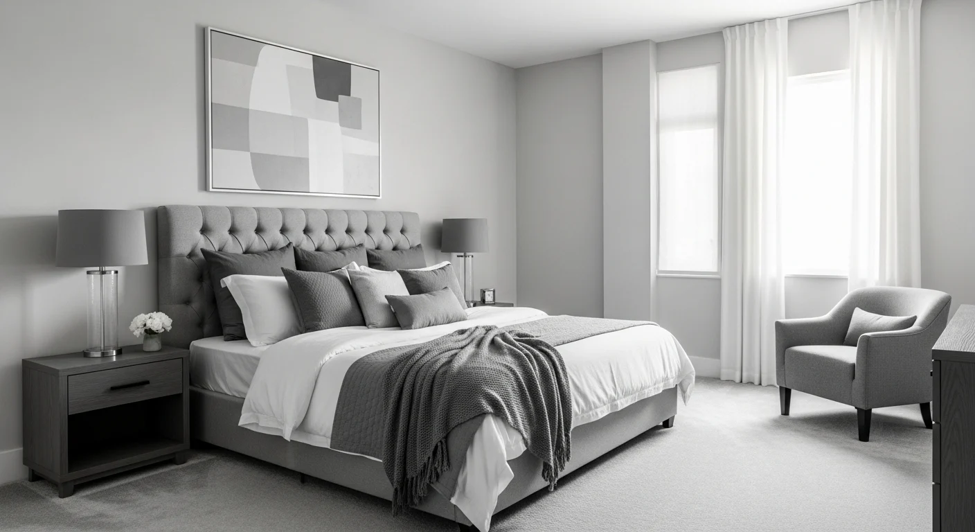 11. Minimalist Monochrome Luxury Bedroom
