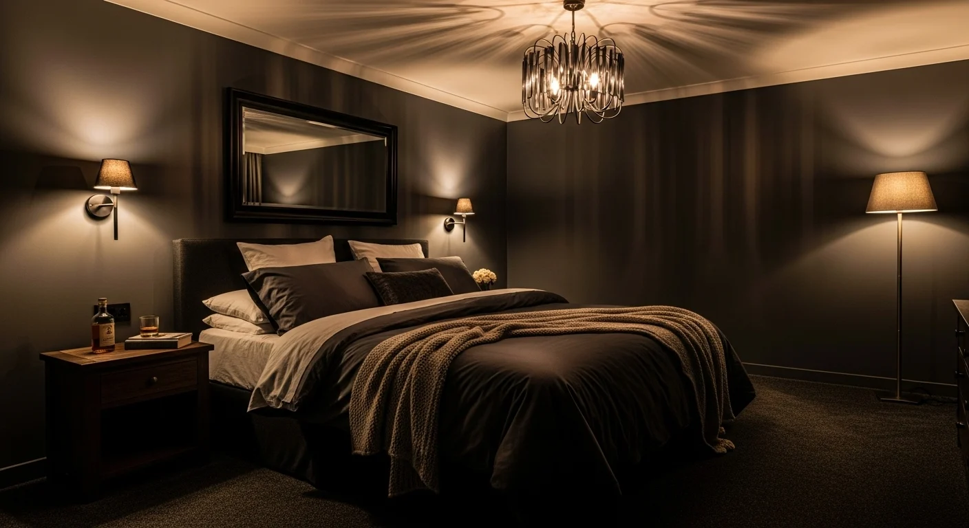 Dark luxury bedrooms use deep tones such as charcoal, navy, or espresso brown to create a dramatic and intimate atmosphere. Balanced with warm lighting and plush textures, these spaces feel rich and cocooning rather than heavy.
