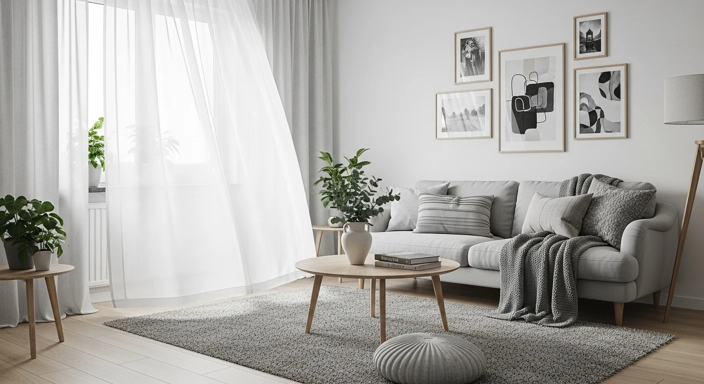 Natural light is essential in Nordic interiors. Large windows paired with sheer curtains allow sunlight to fill the room, enhancing warmth and positivity throughout the space.