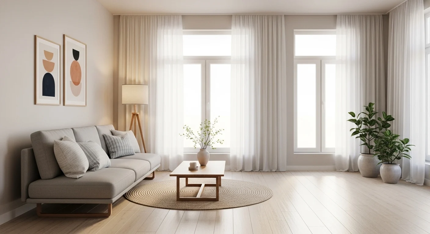 Light linen curtains add softness while allowing light to pass through gently.