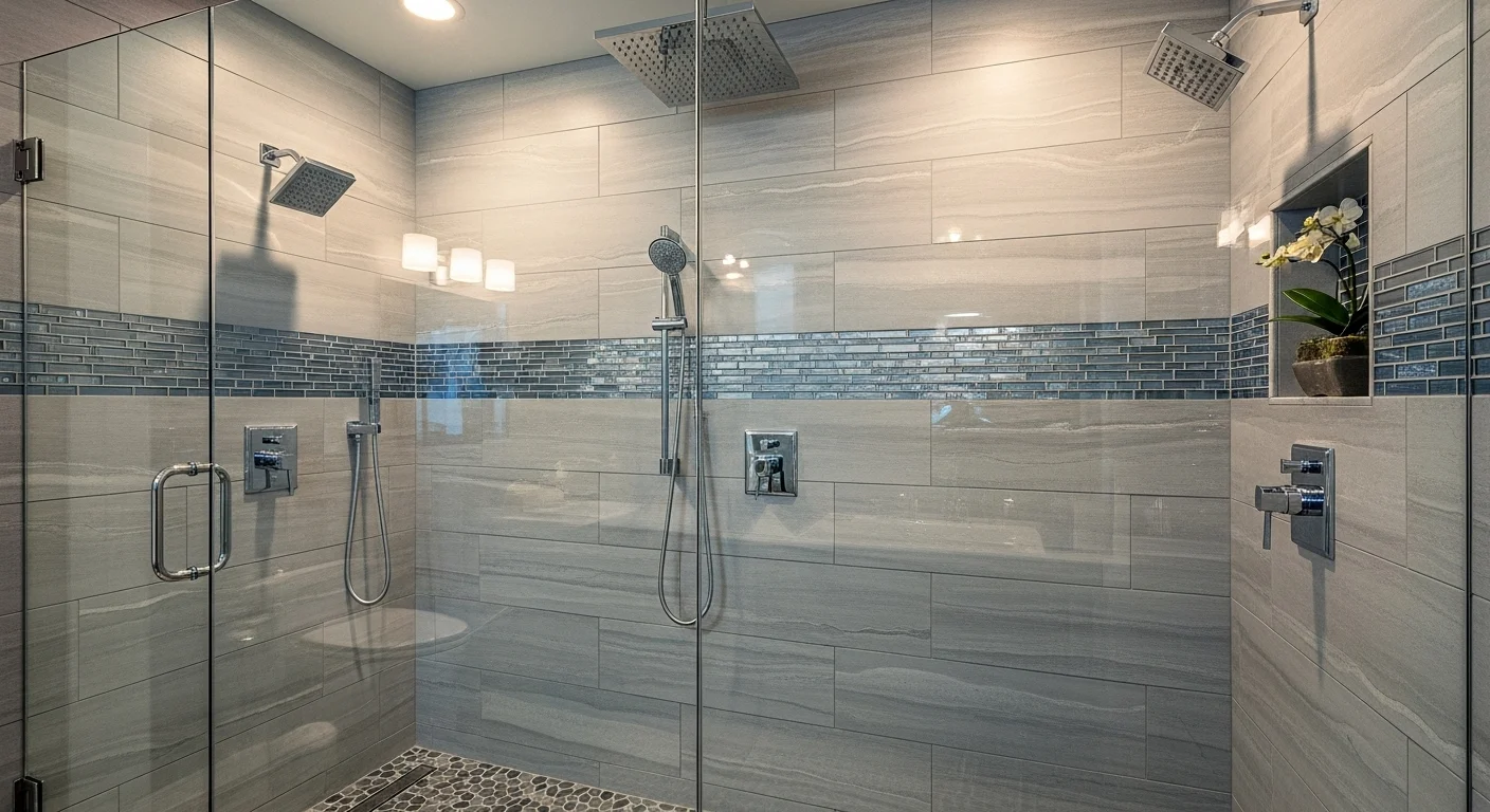 Install adjustable fixtures. Maintain good water pressure planning. Use symmetrical layout. Add bench seating. Keep design cohesive. This remodel upgrades daily comfort.