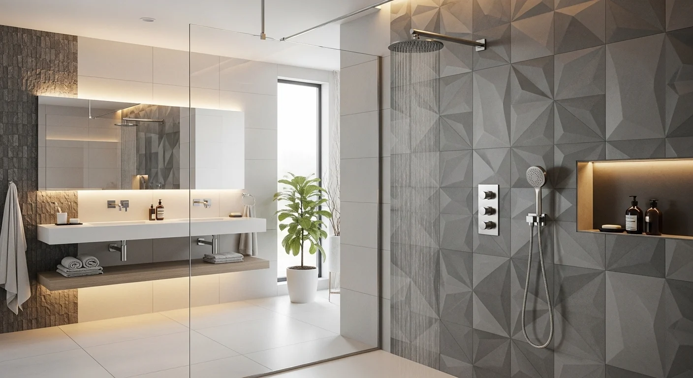 Texture adds depth without heavy decoration. 3D tiles are trending strongly. They create visual interest. Light and shadows enhance design. It feels modern and artistic. Perfect for feature walls.