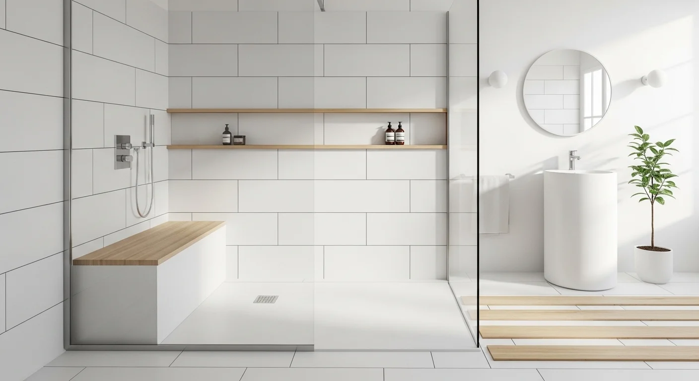 Use waterproof materials. Match bench with tiles. Add soft lighting nearby. Maintain ergonomic height. Keep edges smooth. This remodel enhances usability.