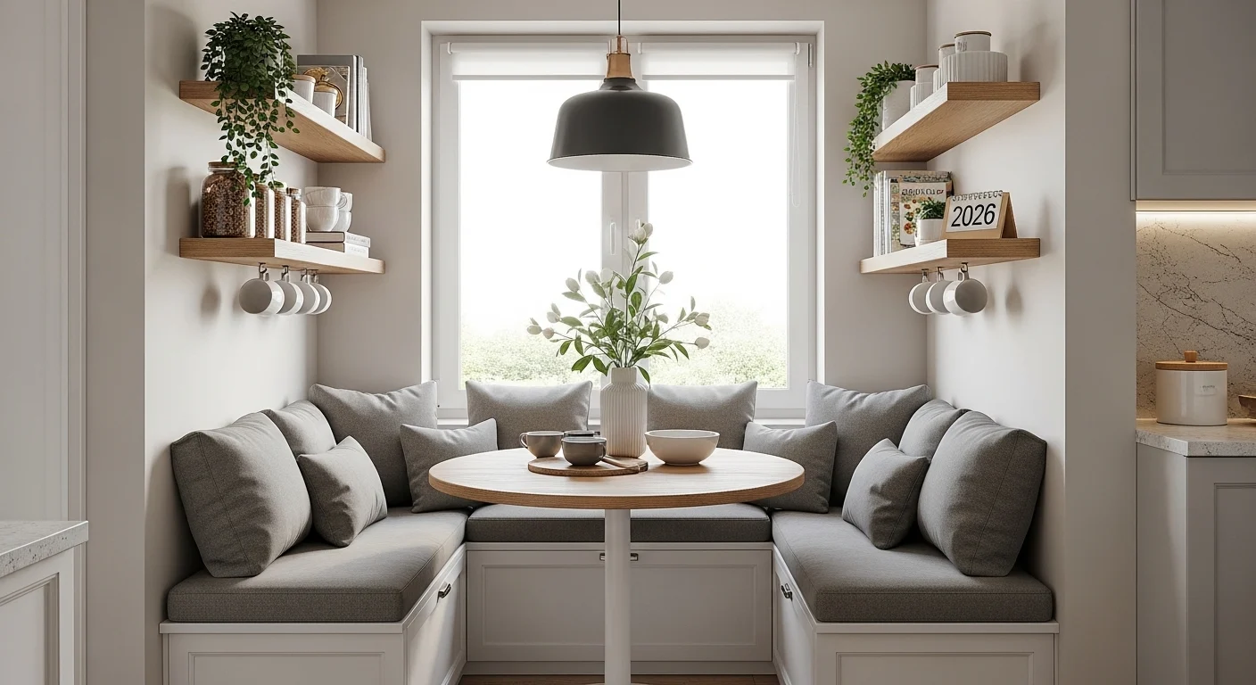 Benches with hidden storage combine seating and organization. This idea maximizes functionality while keeping the kitchen tidy and comfortable.