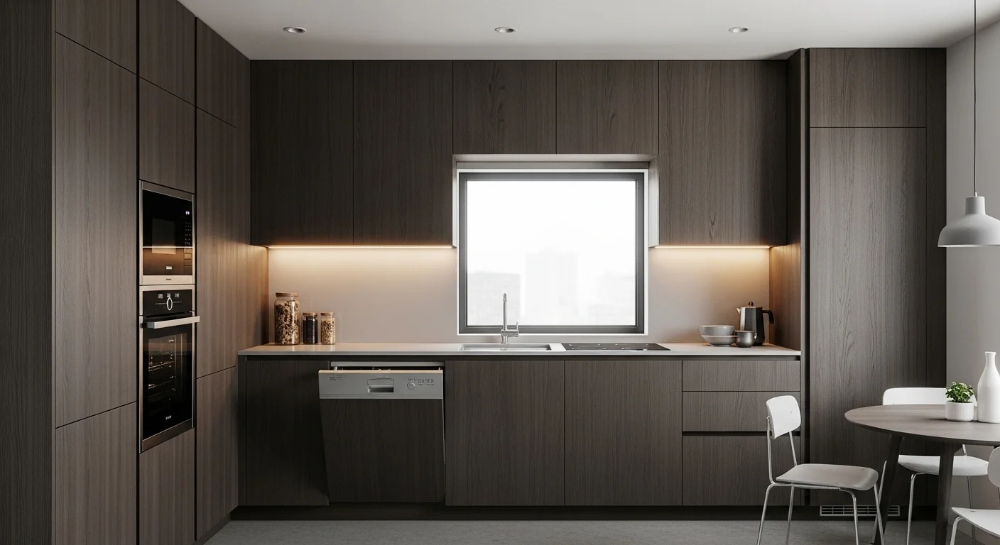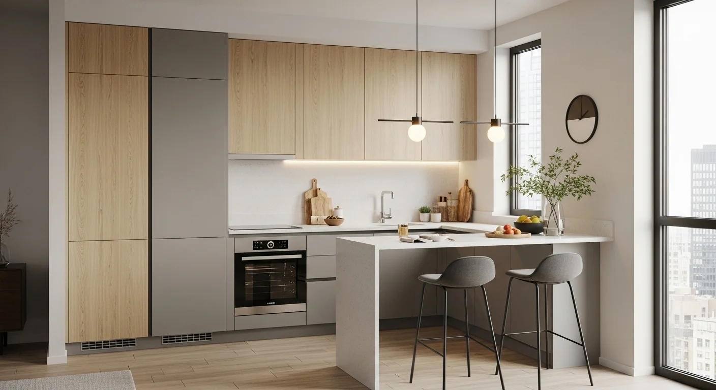 Panel-ready appliances blend into cabinetry, creating a cohesive and uncluttered appearance. This approach is increasingly popular in modern compact homes.