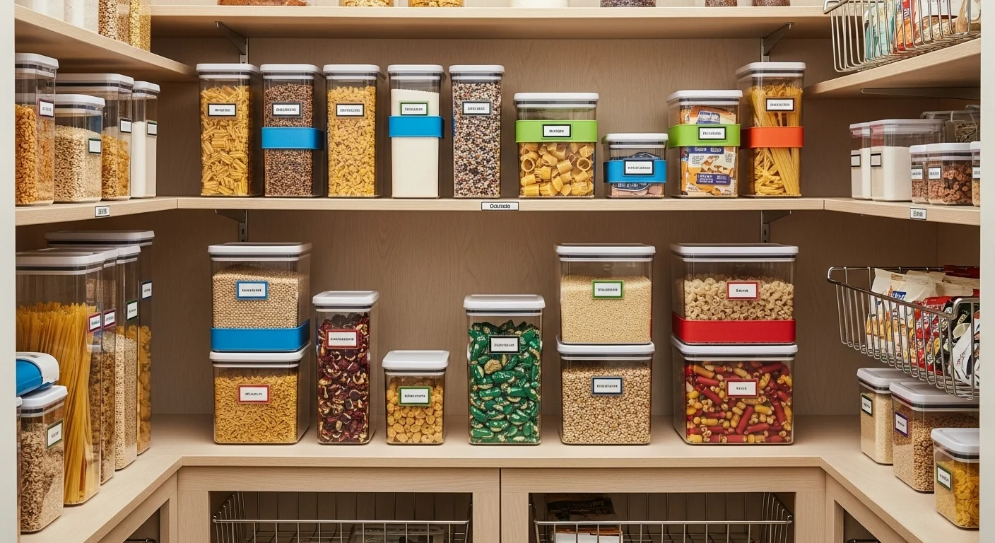 Color-coding improves clarity. Items are grouped visually. Finding ingredients becomes faster. The pantry feels organized. Color adds subtle interest. Function meets style. Ideal for efficient kitchens.