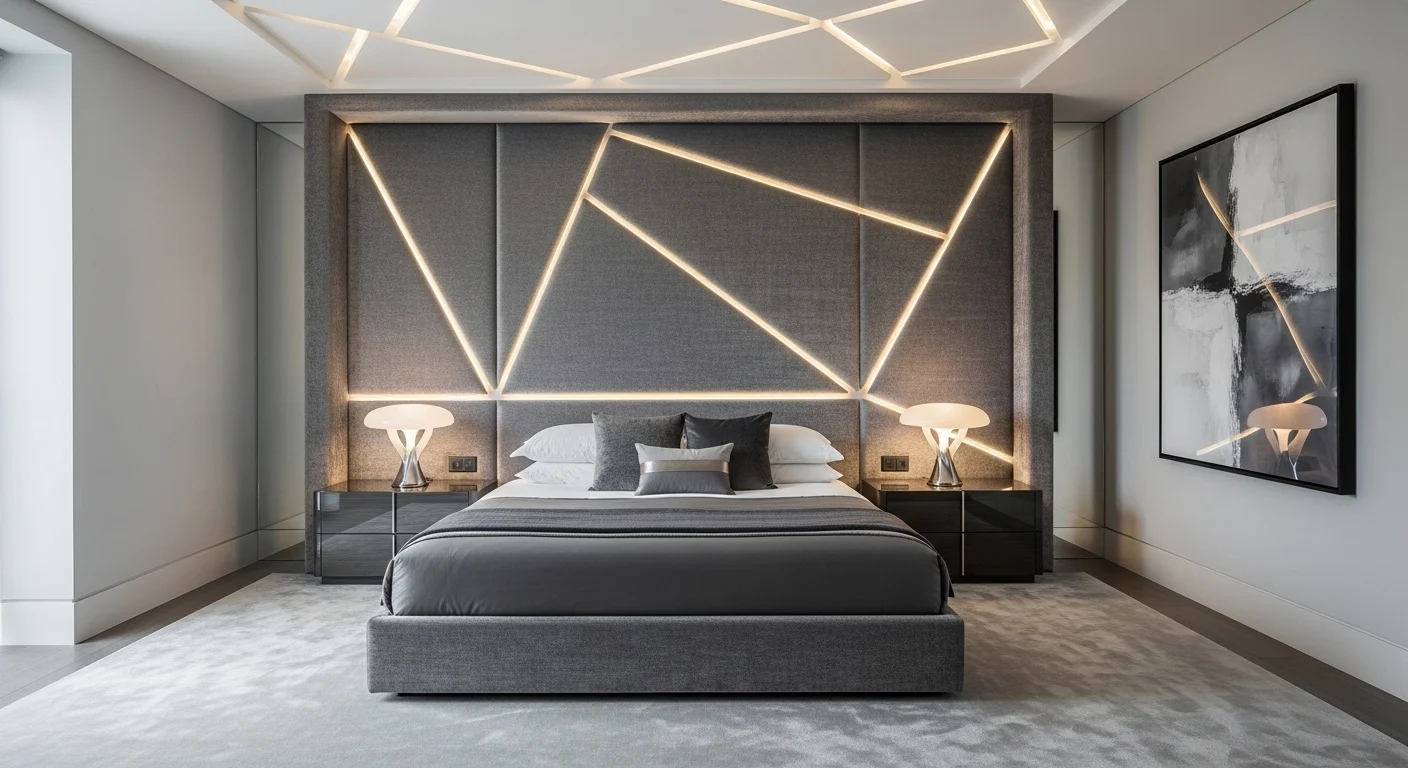 Statement headboards elevate gray bedrooms. They act as focal points. Bold shapes or textures stand out. Gray walls frame the design. The room feels intentional. A strong design choice.